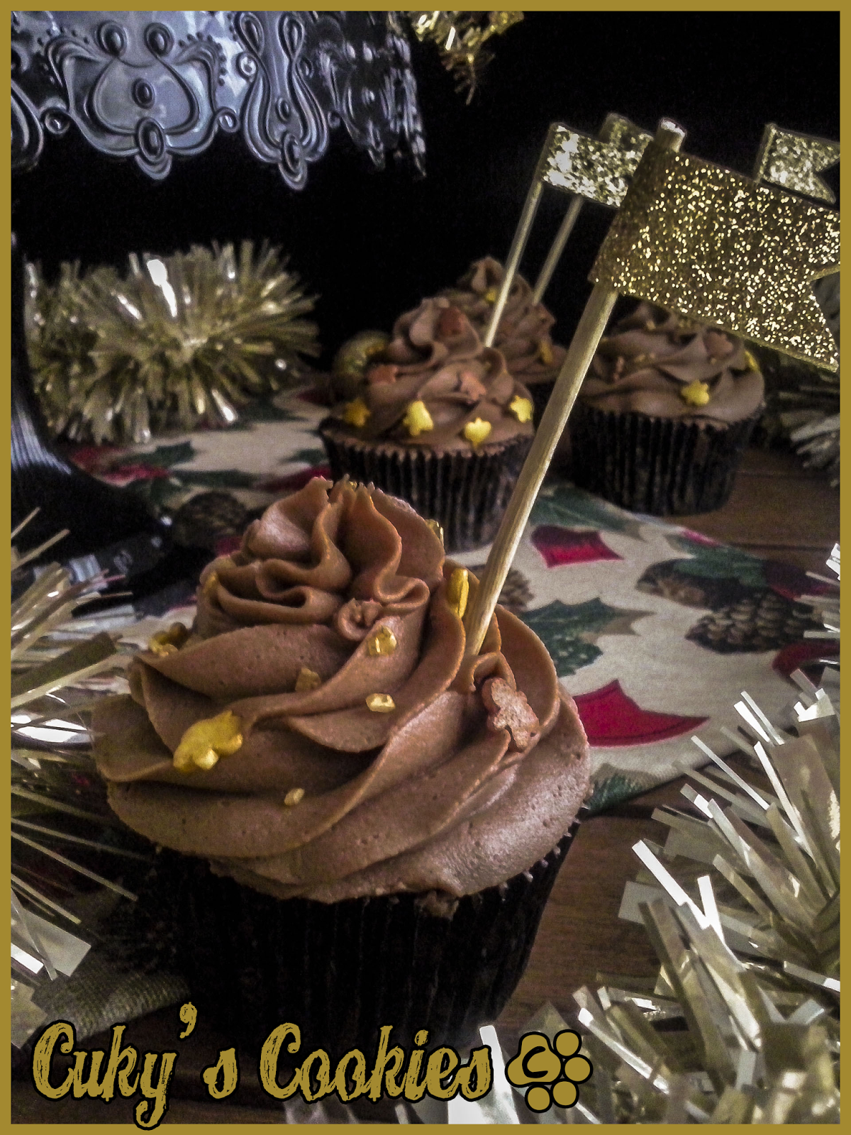 Y este post es pre-navideño y merendoril, porque venimos con otra merienda, y como ya huele a Navidad, ya han encendido las luces y tenemos ganas de fiesta, la merienda de hoy tendrá un toque festivo y navideño, de la mano de Cuky y Cuca...jajaja. (Qué bien queda...)